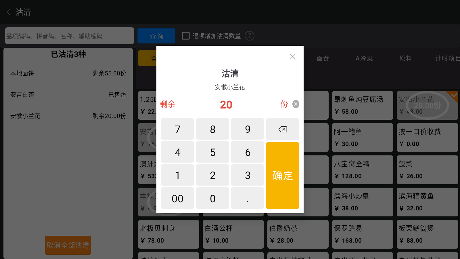3) 点击【确定】,完成沽清操作