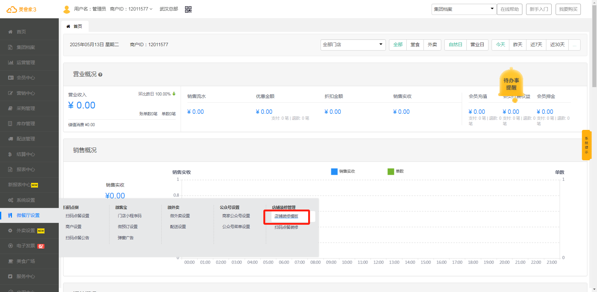 微餐厅设置下的店铺装修管理,店铺装修管理下子目录为店铺装修模板。
