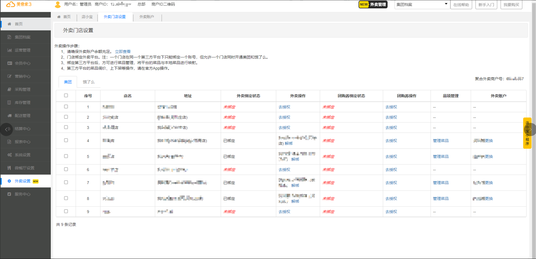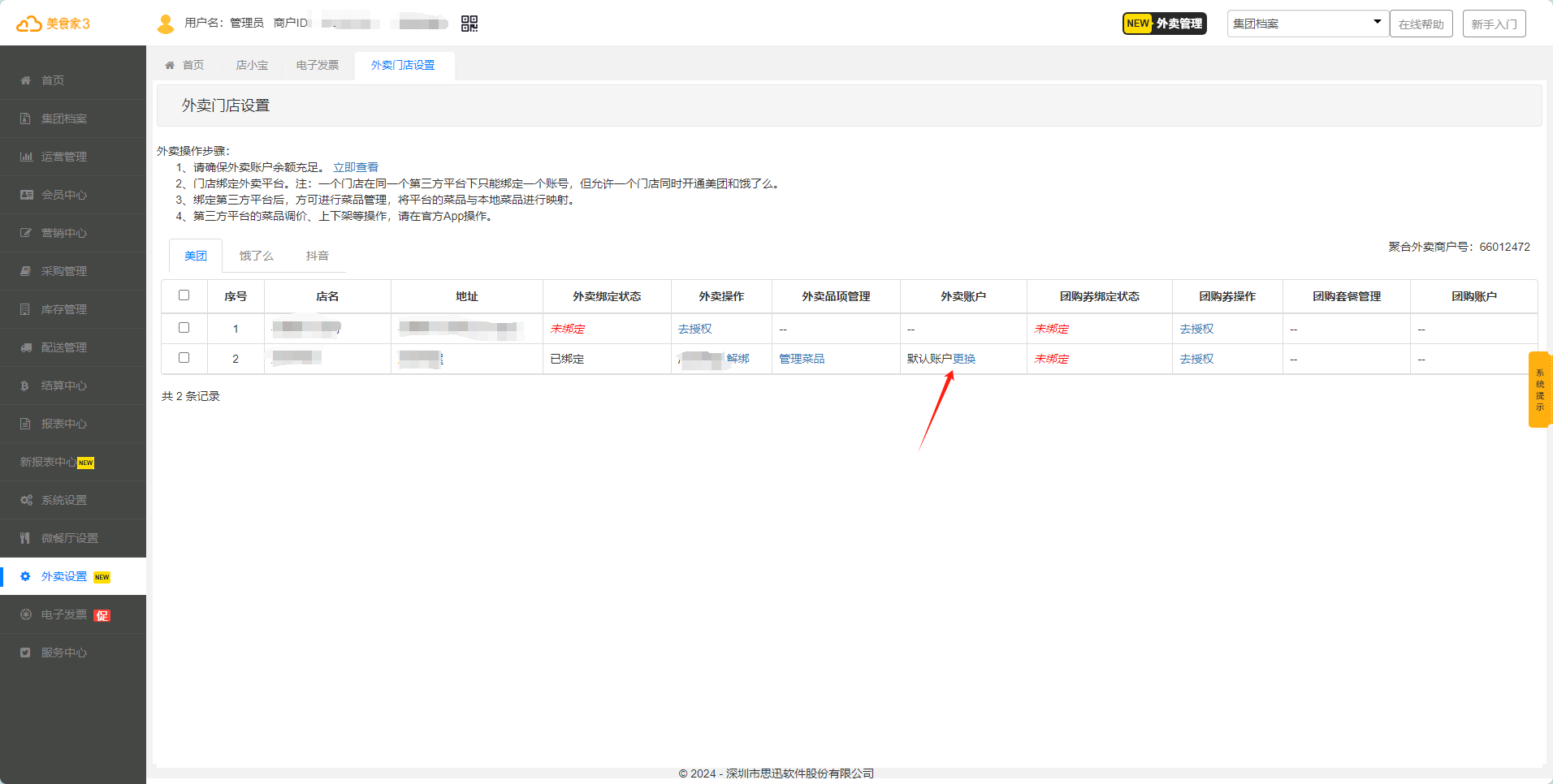 2 查看外卖账号绑定门店: