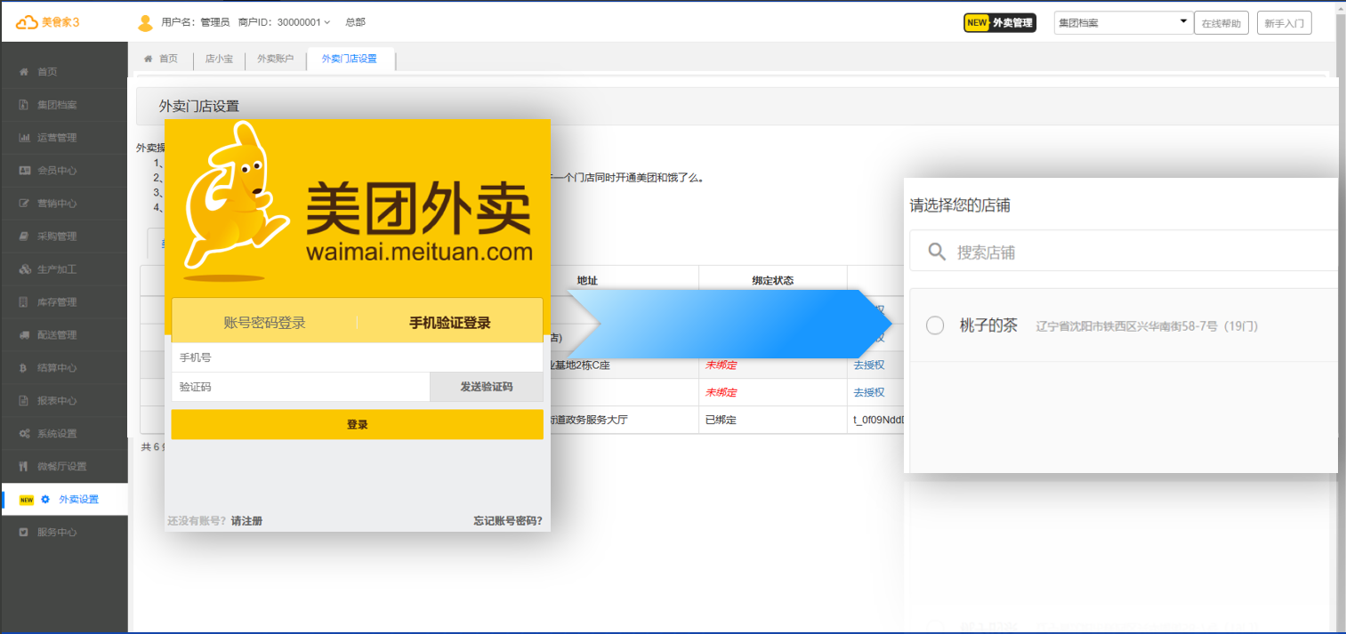 1.2 思迅外卖账号绑定门店: