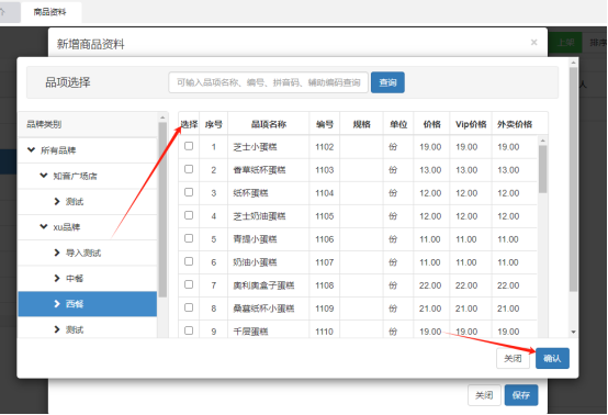 商品类型选择实物,选择相应的商品类别,再点击选择品项,从商品档案中选择商品加入即可。