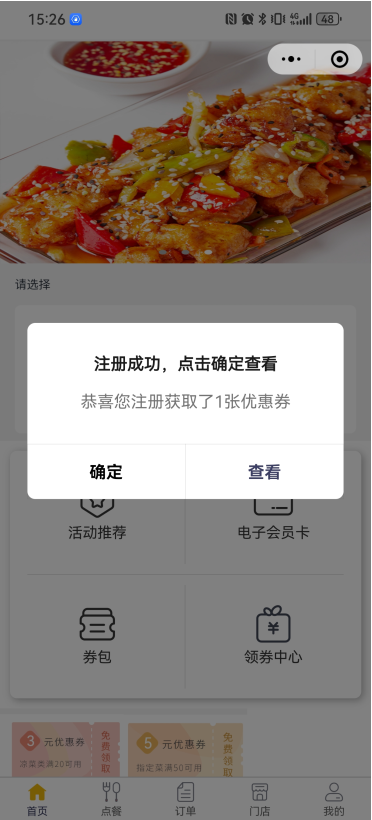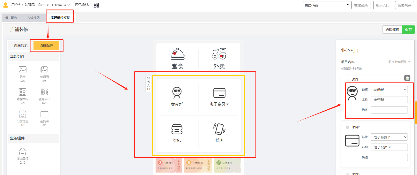 1.后台开放老带新的入口,在微餐厅设置——店铺装修模板——项目组件中添加“老带新”的业务入口。