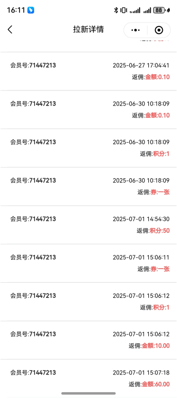 4.新用户可在小程序或者收银前台进行消费,消费成功并满足活动条件,老会员即可得到对应的奖励。