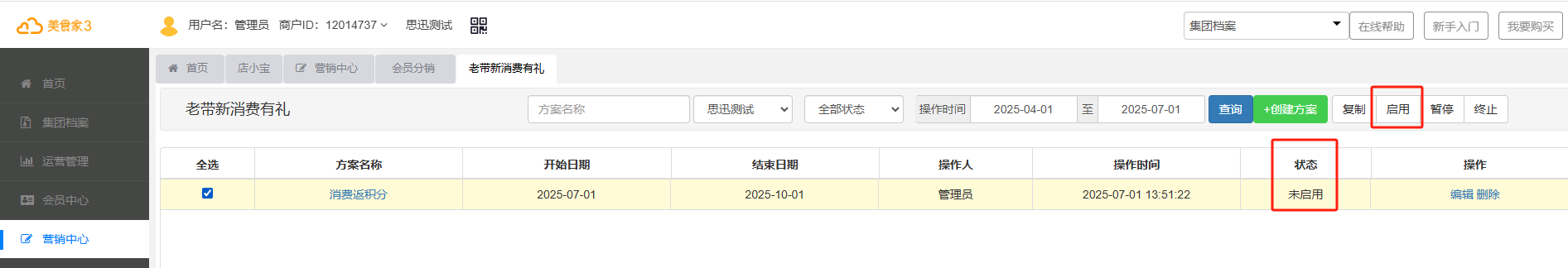 3.启用方案,方案保存后默认为未启用的状态,需要选择对应活动方案进行启用才能生效。