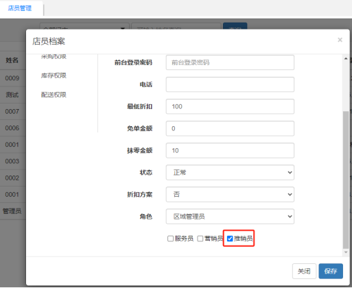 推销员提成是对推销员设置提成,如果该菜品设置了推销员提成,每一次点这个菜都需要选择推销员。先在后台店员管理,把店员设置成推销员,然后在品项档案里设置推销员提成,前台进行销售系统会自动计算提成,如图: